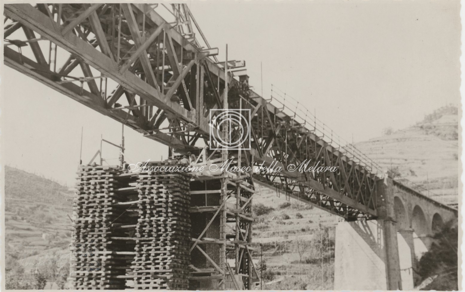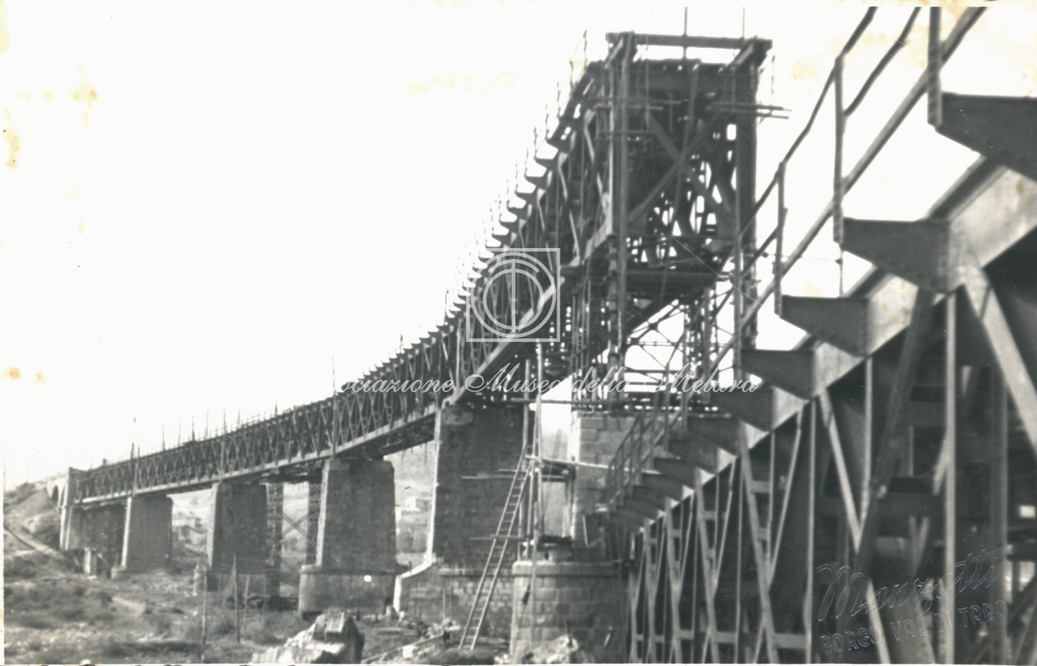 Gli scatti, di vario formato, documentano i lavori di ricostruzione del ponte ferroviario di Borgo Val di Taro, in provincia di Parma, distrutto dai bombardamenti nel corso della Seconda Guerra Mondiale. La data di compilazione dell’album risale al 29 maggio 1946, e le fotografie sono probabilmente databili allo stesso anno e a quello precedente, quando, dopo la Liberazione e la fine della guerra, gli stabilimenti spezzini della Odero Terni Orlando inaugurarono, o meglio, intensificarono la produzione civile e ferroviaria.