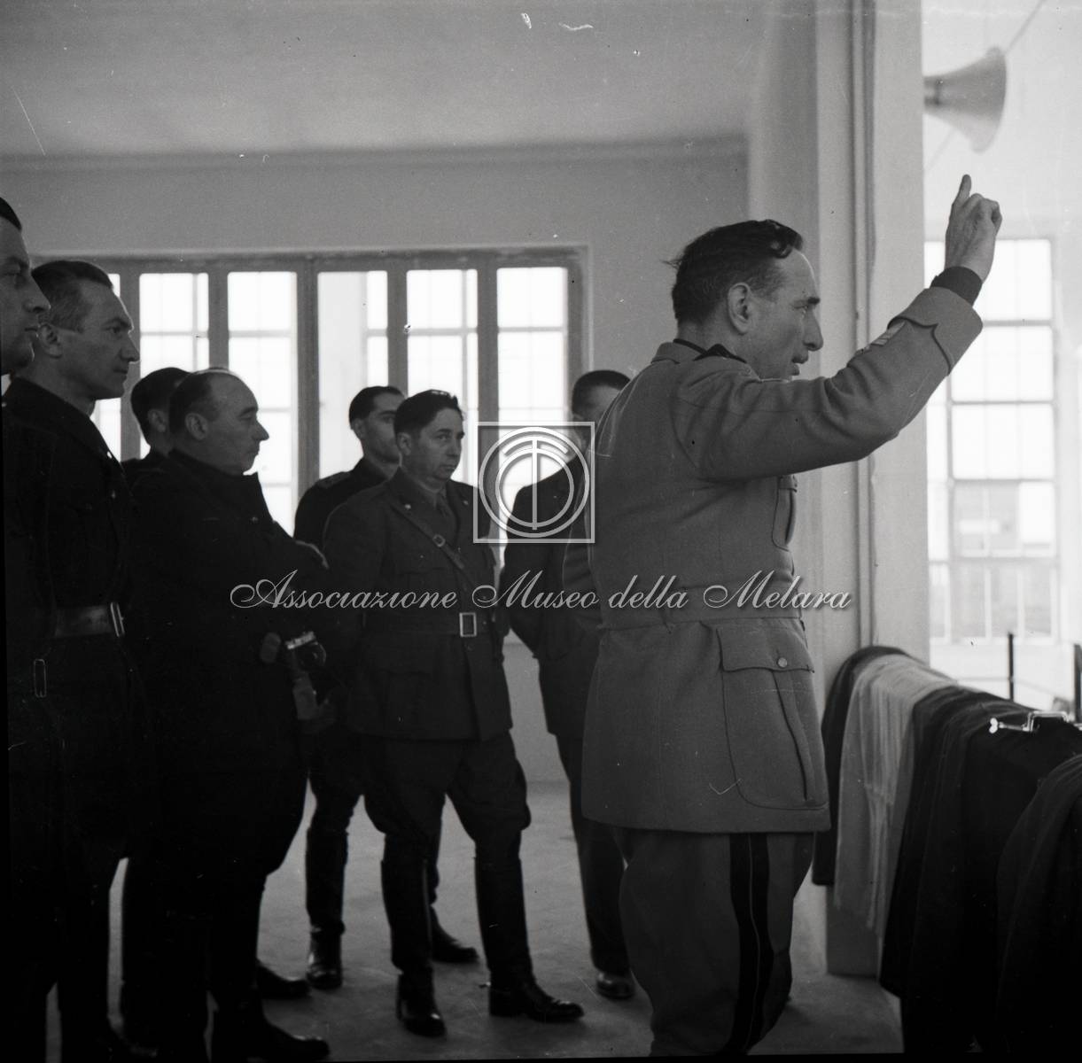 Gerarca impegnato nel discorso con autorità al seguito (2)