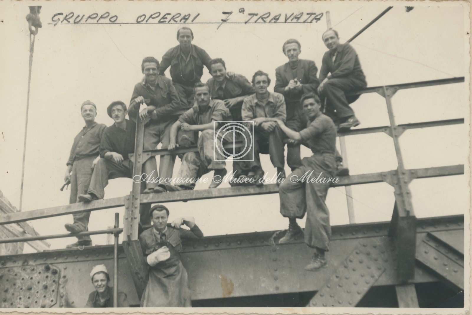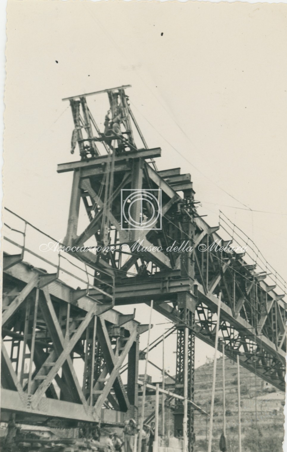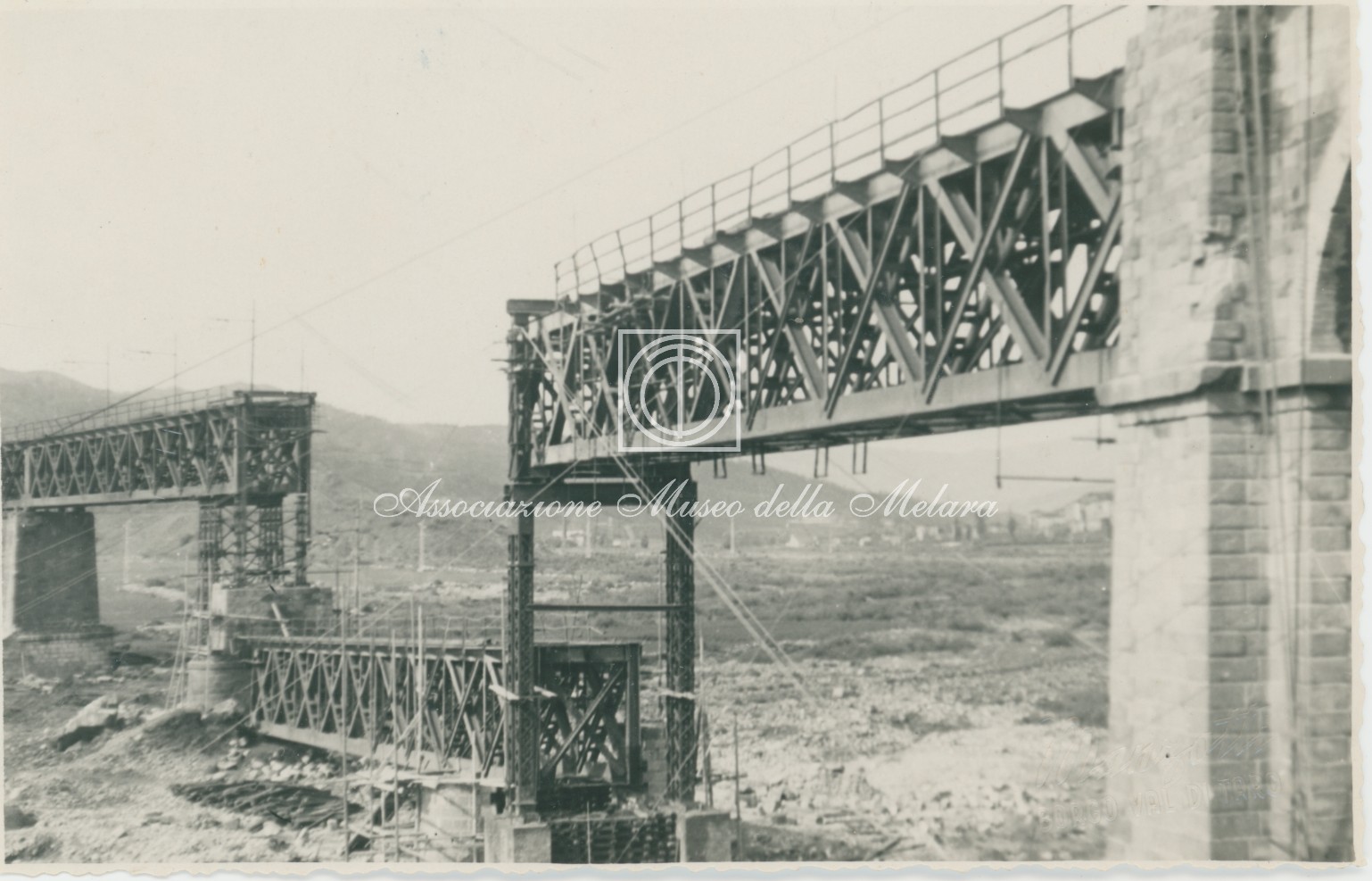 Gli scatti, di vario formato, documentano i lavori di ricostruzione del ponte ferroviario di Borgo Val di Taro, in provincia di Parma, distrutto dai bombardamenti nel corso della Seconda Guerra Mondiale. La data di compilazione dell’album risale al 29 maggio 1946, e le fotografie sono probabilmente databili allo stesso anno e a quello precedente, quando, dopo la Liberazione e la fine della guerra, gli stabilimenti spezzini della Odero Terni Orlando inaugurarono, o meglio, intensificarono la produzione civile e ferroviaria.