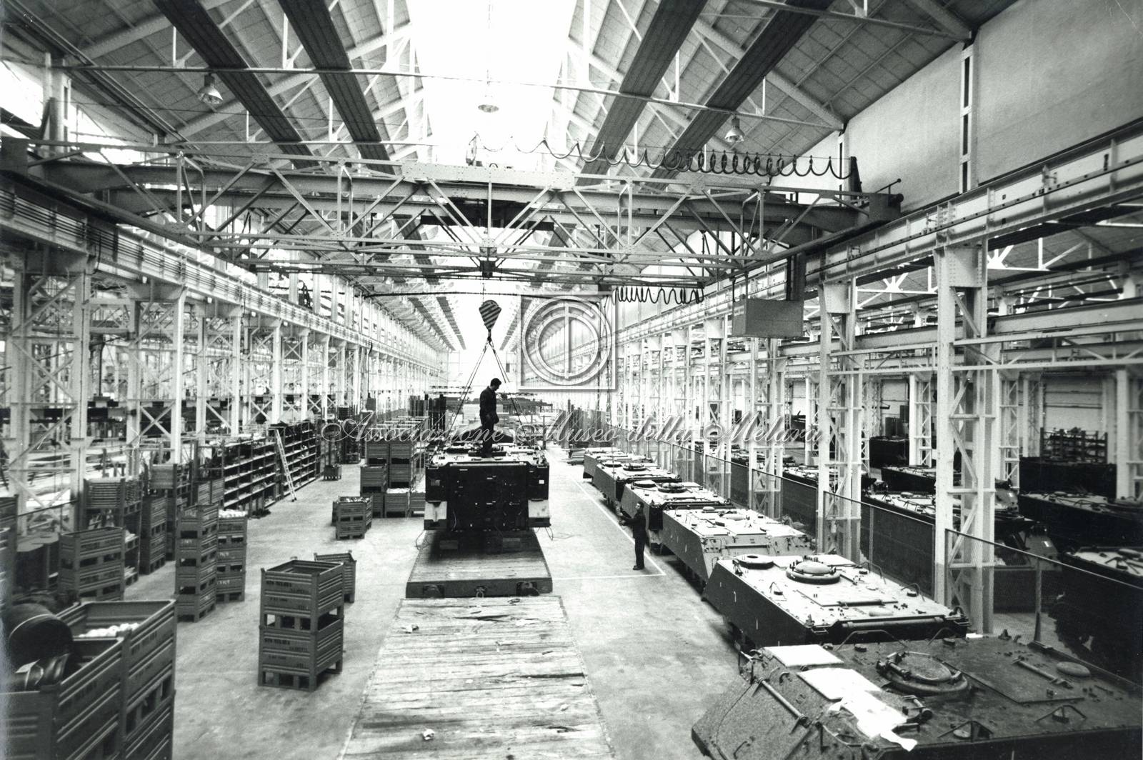 E poi ci sono le foto relative alla produzione militare, che tra gli anni 60' e 70' del 1900 è tornata ad essere il settore principale dell'azienda. Possiamo vedere cannoni navali, anche di grosso calibro, obici in via di realizzazione e scafi di veicoli da combattimento in costruzione. A questo proposito, se si osservano alcuni scatti, è facile riconoscere diversi componenti del Veicolo Trasporto Truppe M113, il cui progetto si sarebbe rivelato di fondamentale importanza per la OTO Melara e per la sua futura notorietà nel mondo delle armi. Ma le fotografie di Cortini non si concentrano in modo esclusivo sui prodotti realizzati nei reparti degli stabilimenti. E' la figura umana a essere in primo piano e a guidare in maniera operosa le attività dell'industria e della fabbrica, risultando così protagonista indiscussa nel nuovo modo di concepire il lavoro.