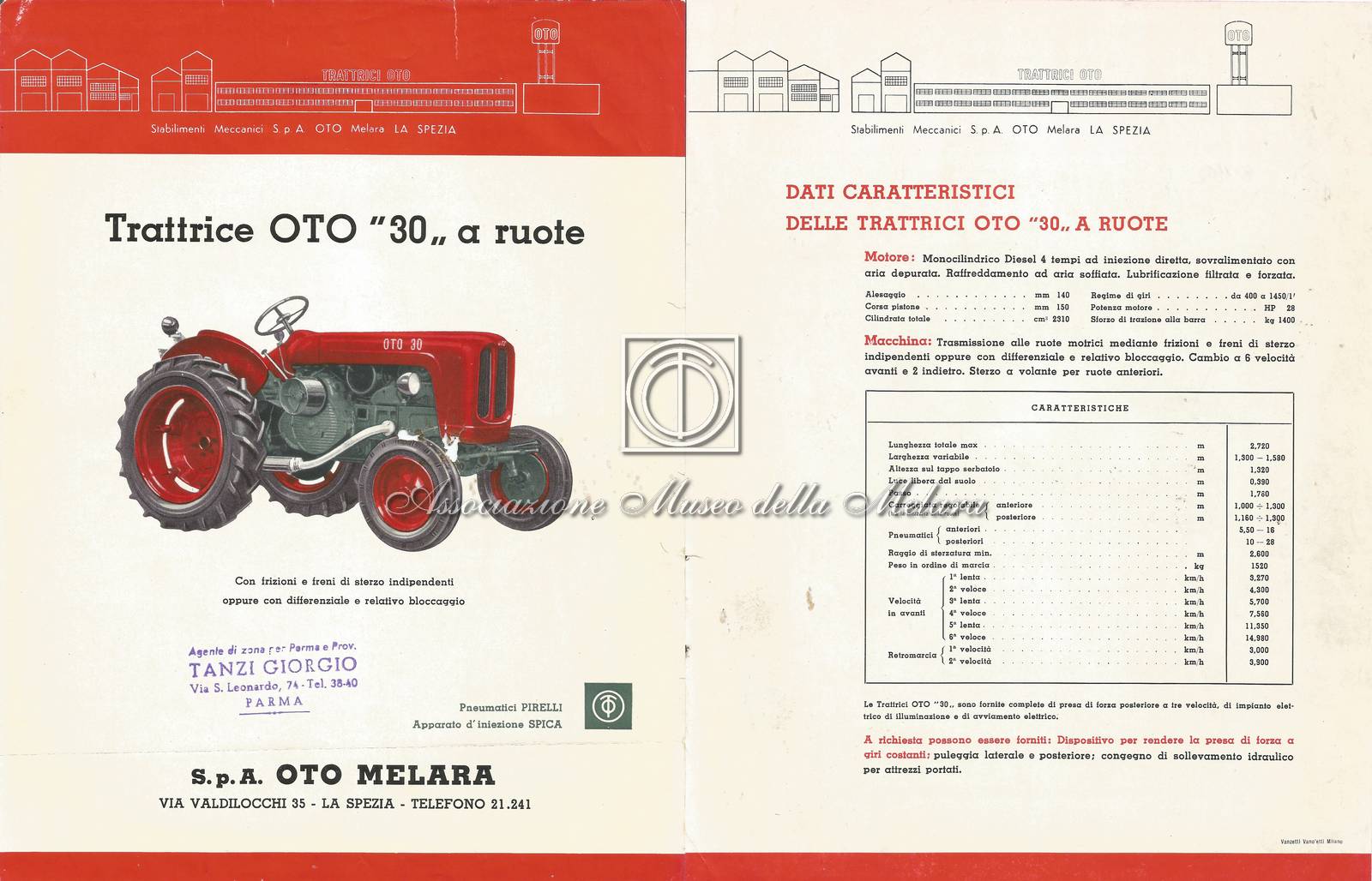 E' presente il timbro di proprietà del commissario di vendita Tanzi Giorgio, con sede a Parma.