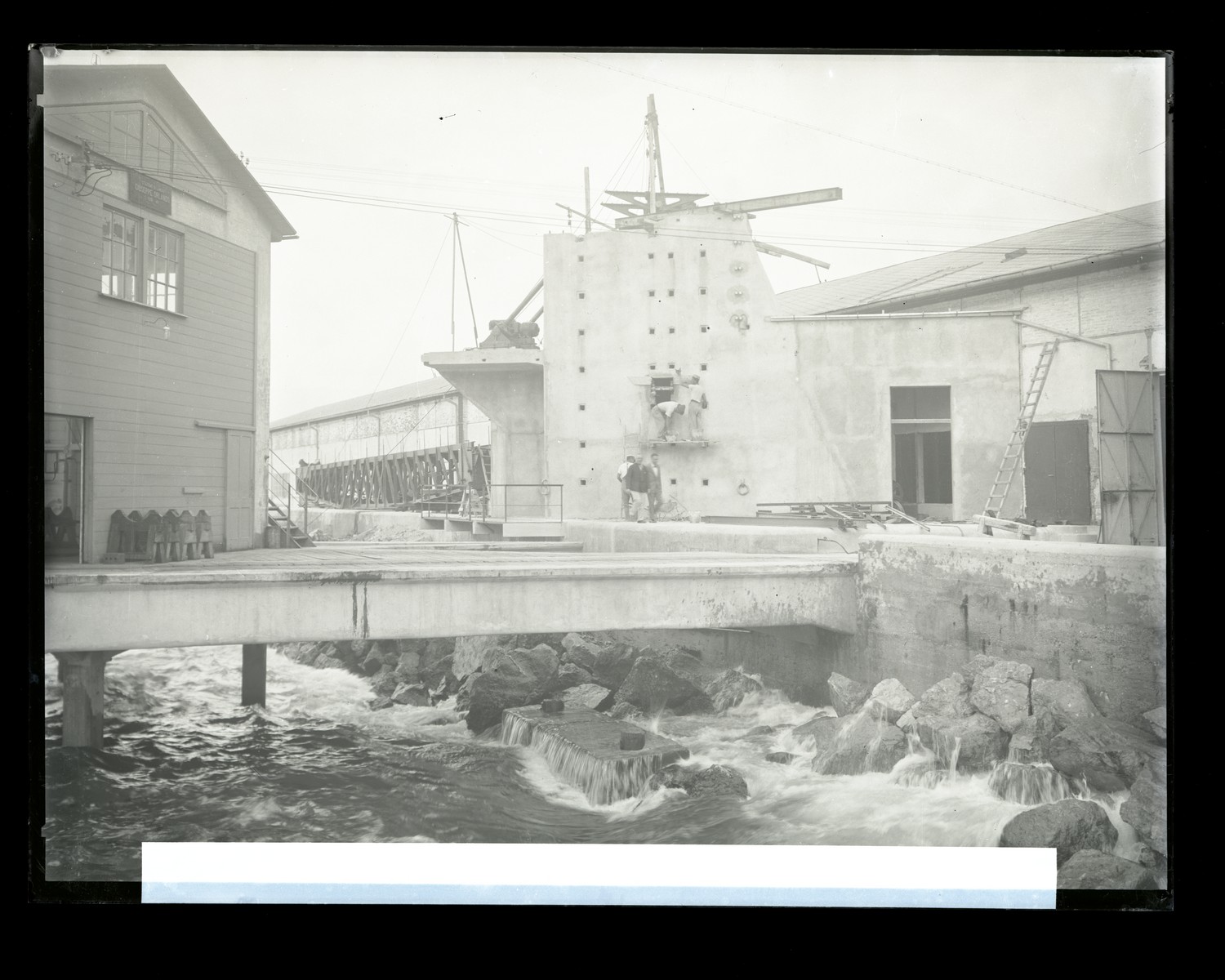Operai al lavoro per la costruzione della catapulta per il collaudo degli aviosiluri del silurificio Whitehead di Fiume