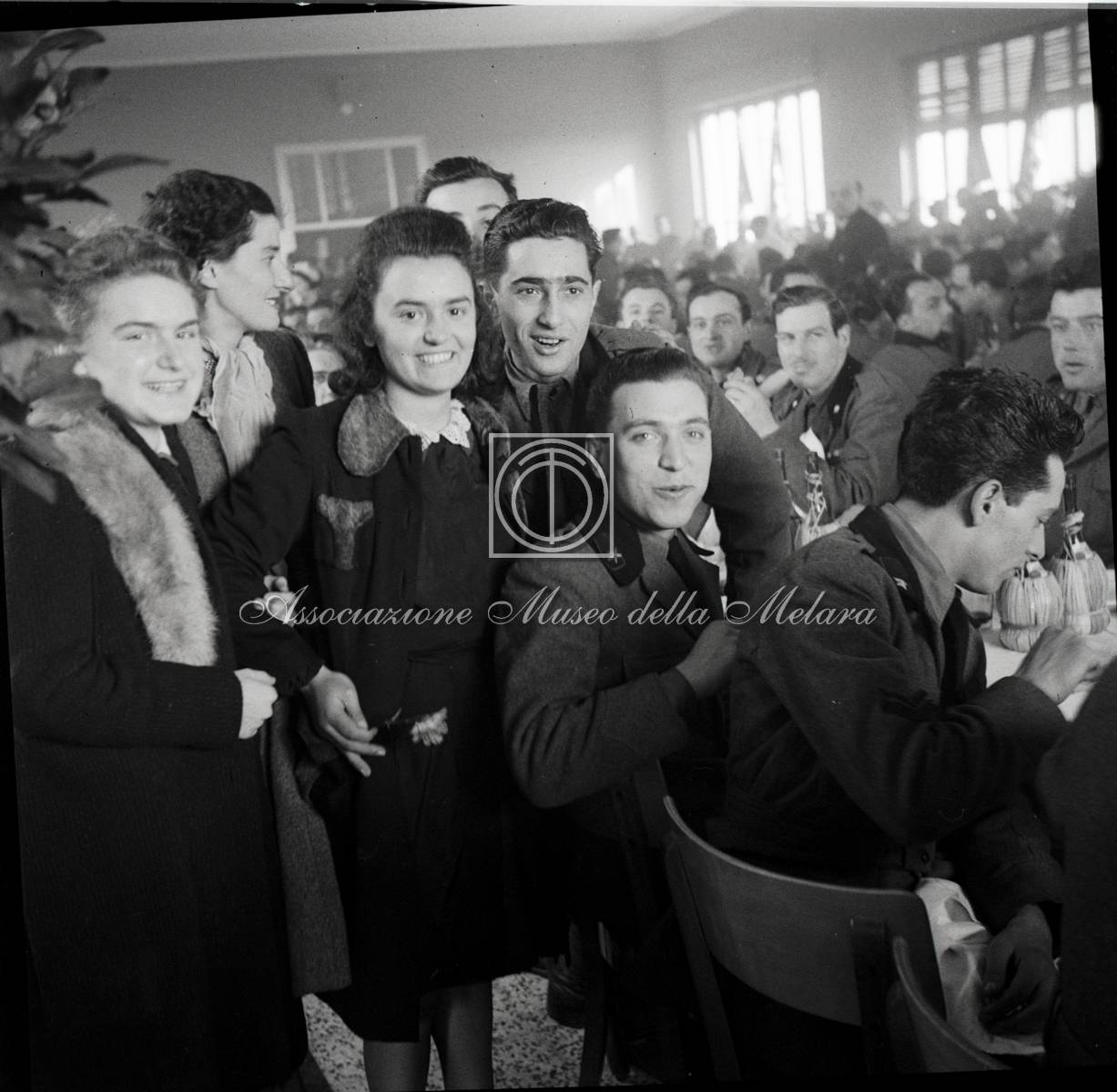 Giovani militari con giovani operaie